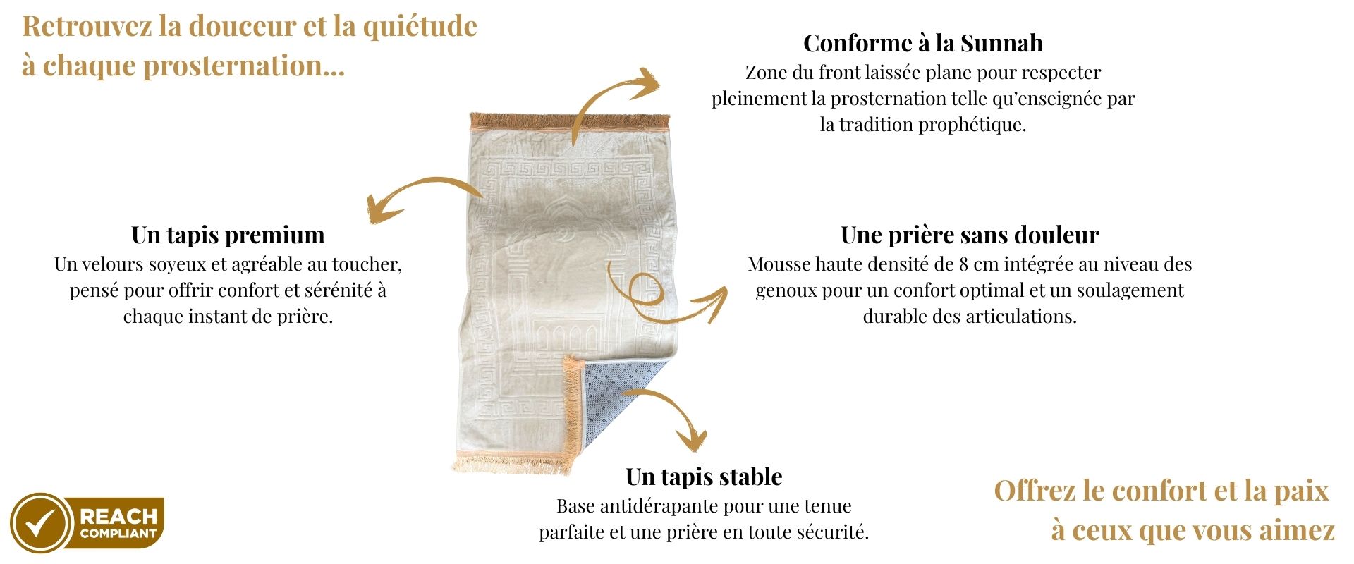 Ne laissez plus la douleur vous priver du cœur de votre prière. Grâce à ErgoMat™, chaque sujūd devient un moment de paix, sans pression ni gêne.